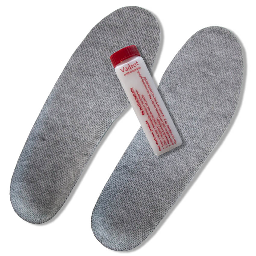 The Vadret - Sweaty Feet Insoles are considered as one of the best solutions for sweaty feet, by many specialists. The specially designed sweaty feet insoles are made of emsecco fibres. The insoles are moisture-absorbing, odor-resistant and bactericidal. Ensuring you can get rid of sweaty feet and the nasty smell drastically. In addition, these insoles also have optimum shock absorption, pressure distribution and pressure relief. The insoles feel very comfortable and are perfect for people who stand, walk and/or exercise a lot. All these qualities ensure that the Vadret - Sweaty Feet Insoles have been used for years with great success by tens of thousands of people for the optimal prevention of sweaty feet. So don't wait any longer and help yourself to get rid of the nasty smells and experience the difference with the Vadret - Sweaty Feet Insoles (come in pairs and for optimum results we advise you to use them in combination with the Vadret - Anti-Sweaty Feet Granes).